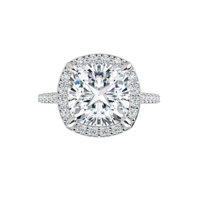 14K White Cushion Engagement Ring