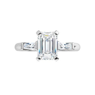 14K White Emerald Engagement Ring
