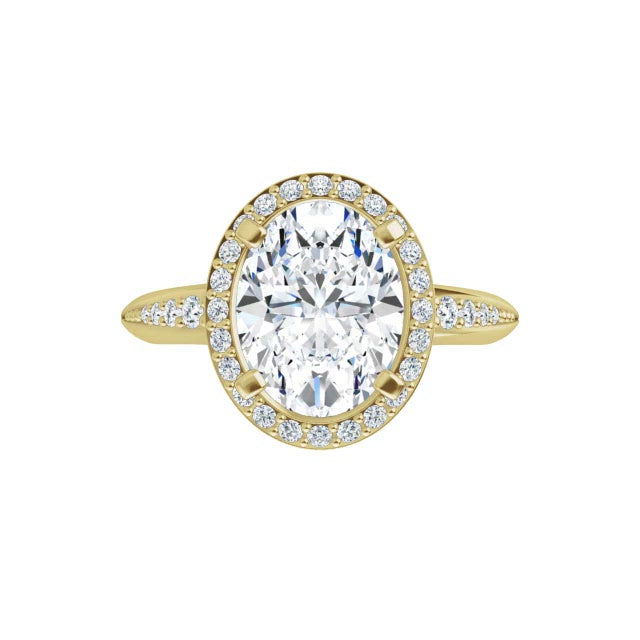 14K Yellow Oval Knife Edge Halo-Style Engagement Ring