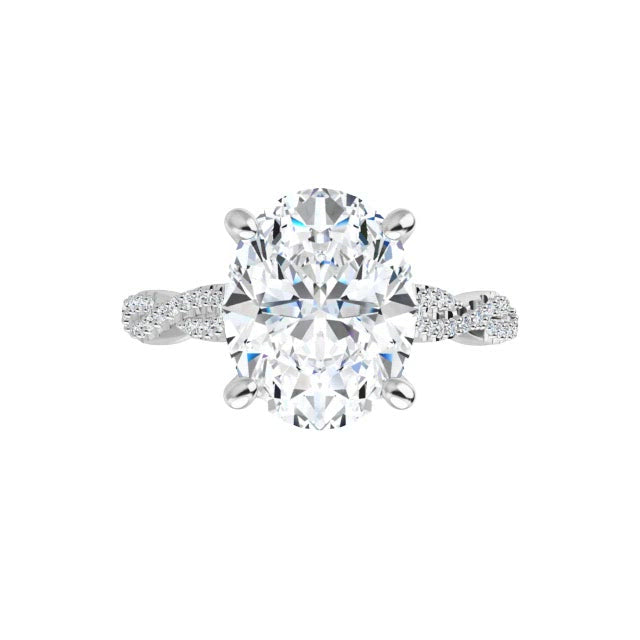 14K White Oval Engagement Ring